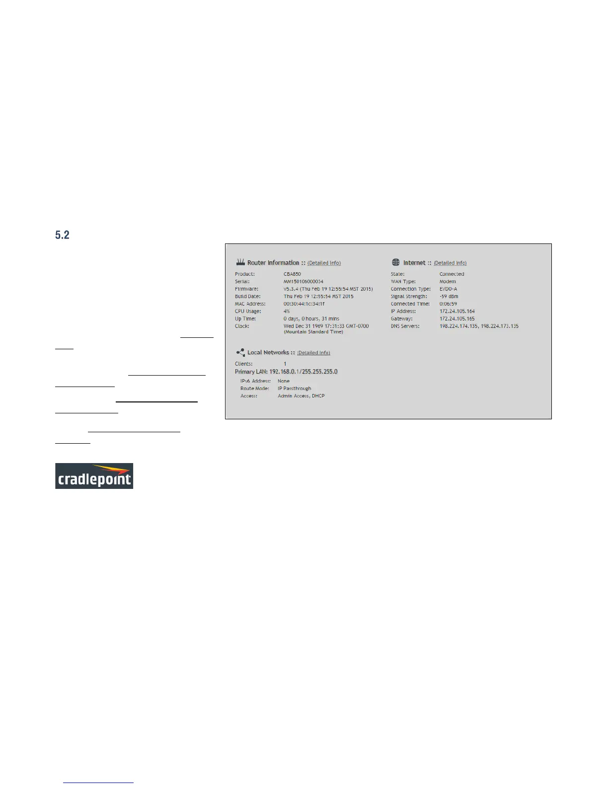 Also, you can click on the Cradlepoint logo in the upper left-hand corner to return to the Dashboard from any