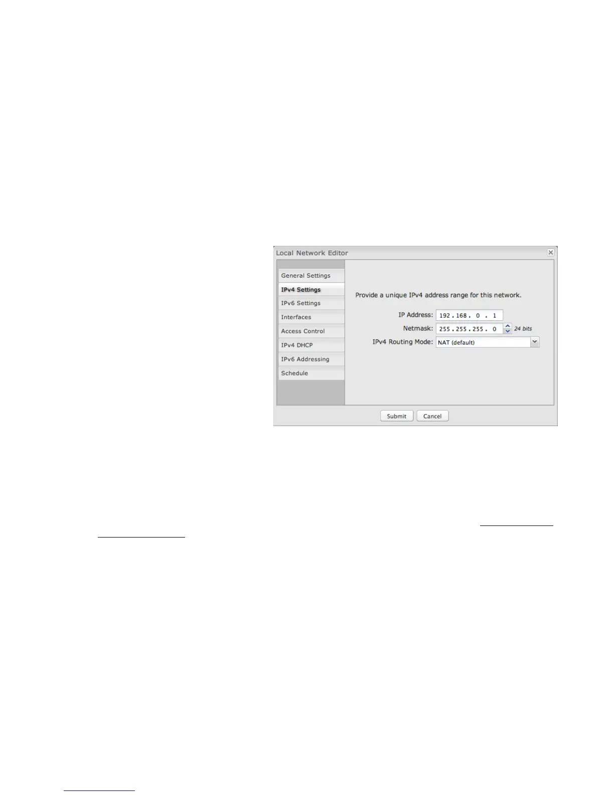 IPv4 Routing Mode: (Default: NAT) Each network can use a unique routing mode to connect to the Internet and other local
