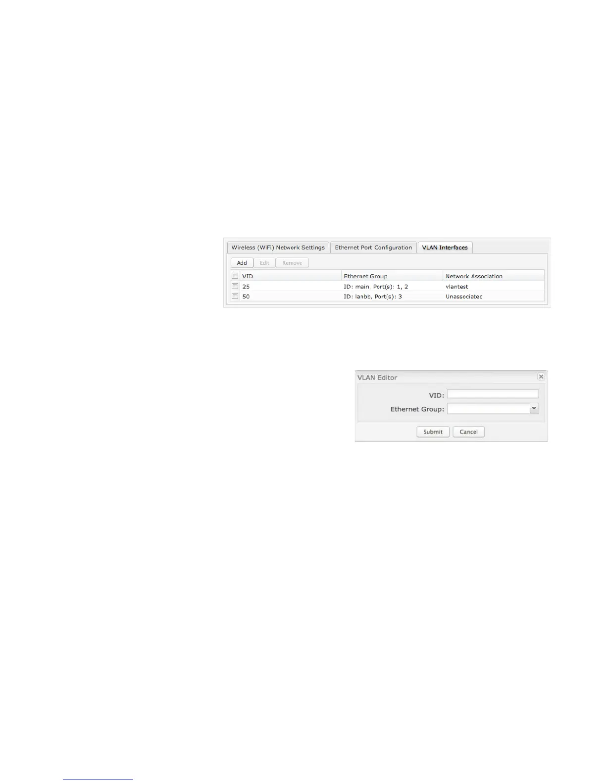 To enable a VLAN, select a VID (virtual LAN ID) and an Ethernet port group through which users can access the VLAN. Then go