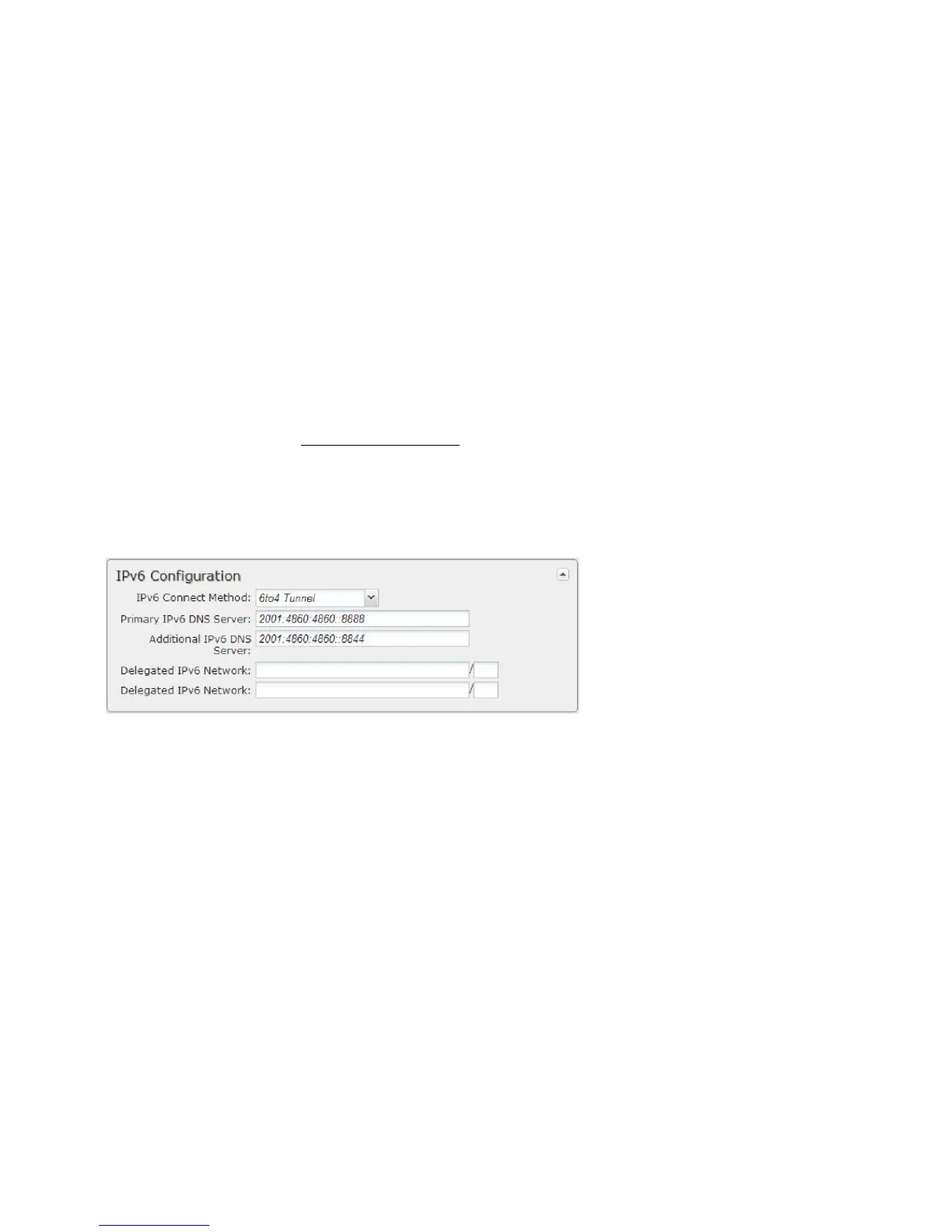 • Primary IPv6 DNS Server – (optional) Depending on your provider, this may be required. This only takes effect if the default