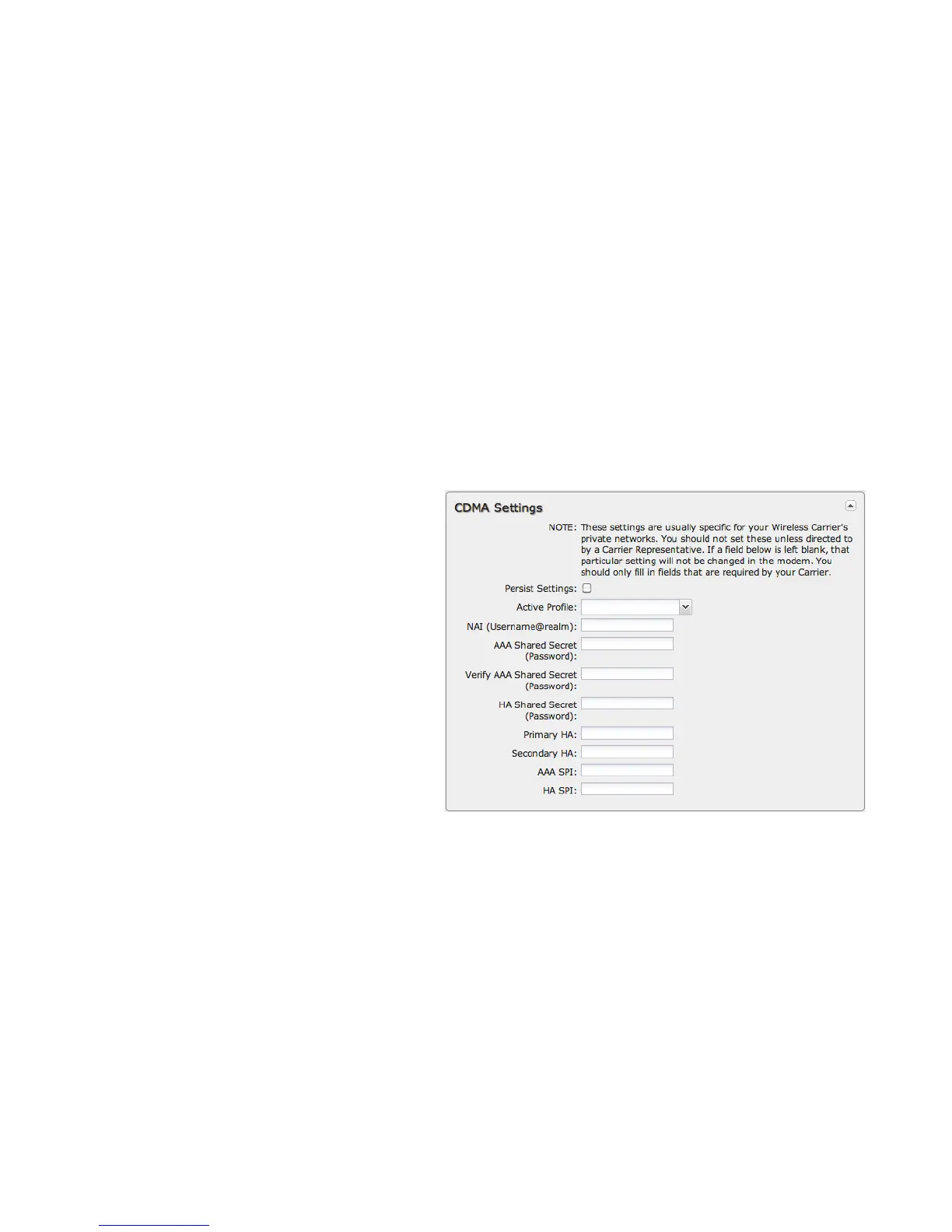 NOTE: Should not be used unless instructed to do so by your modem's cellular provider or by a support technician.