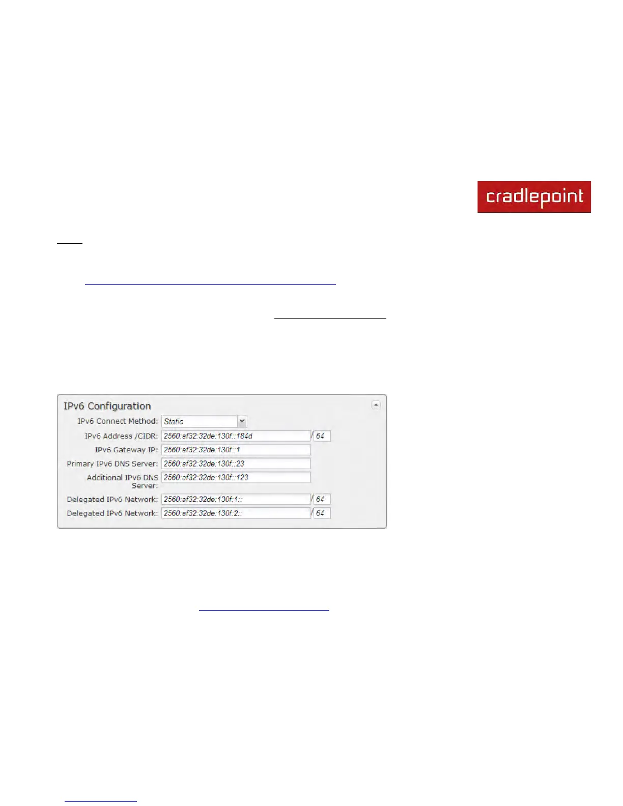 • Delegated IPv6 Network – Additional network available for delegation to LANs.