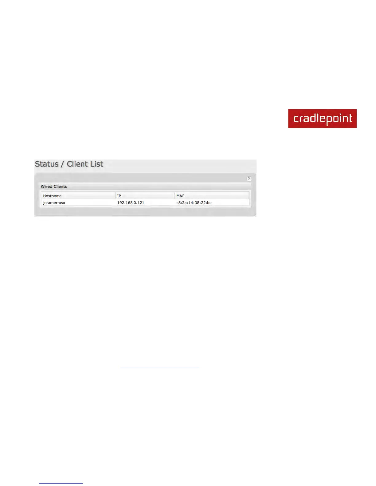 The Client List displays the Hostname, IP, and MAC of the device connected to your router.