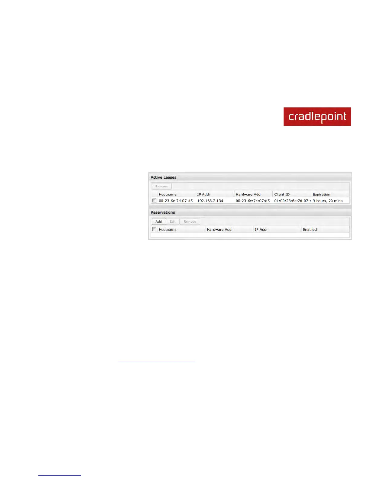 Reservations: This is a list of devices with