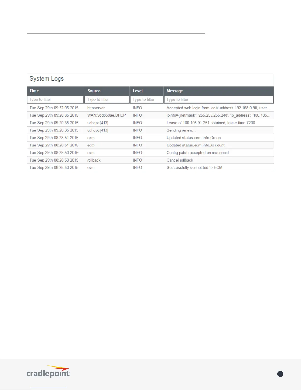 Displays System Log information. To congure System Logging, go to SYSTEM > Administration > System