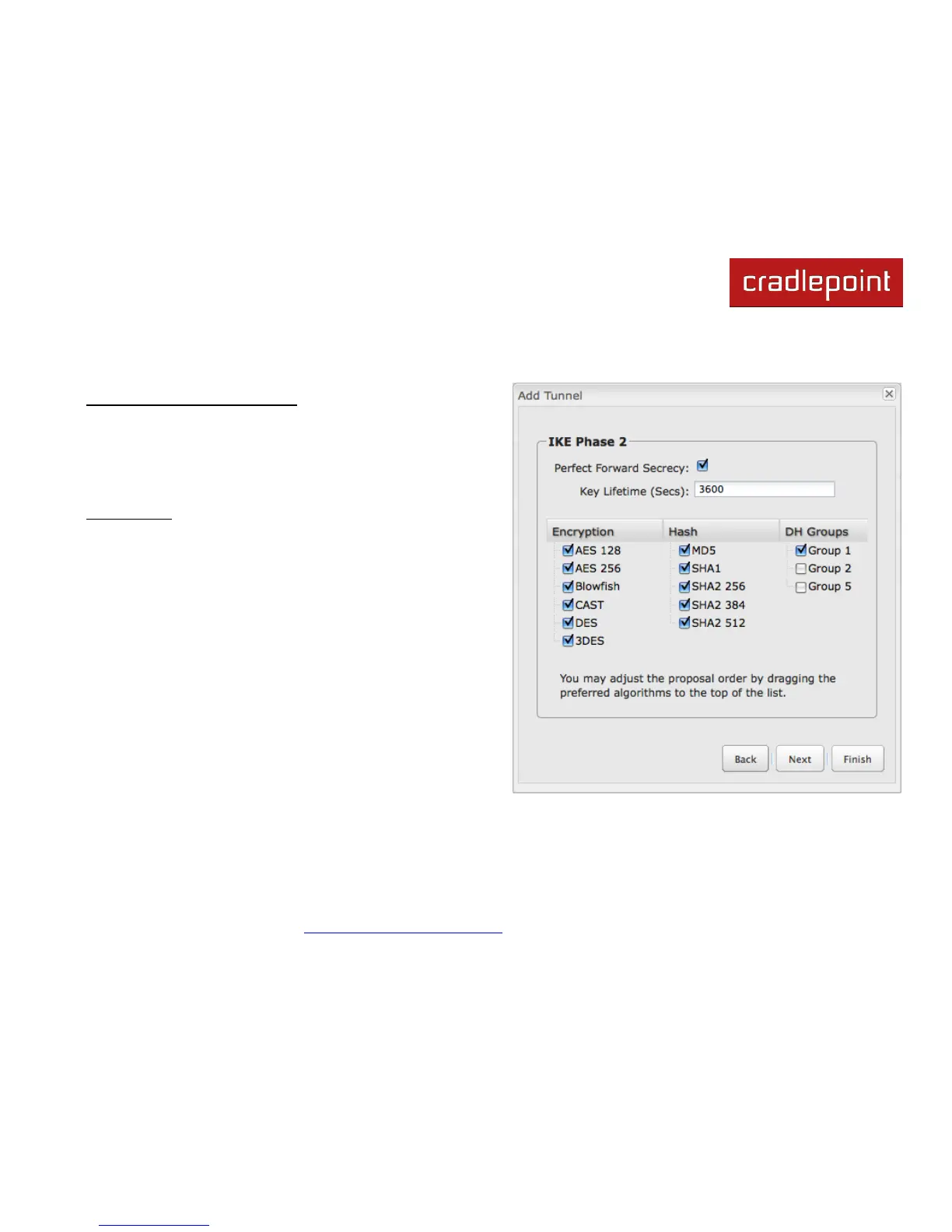 Phase 2 has the same selection of Encryption, Hash, and DH