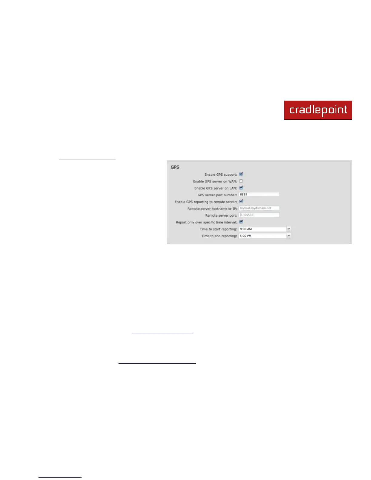 Enable GPS reporting to remote server: Enables periodic reporting of GPS NMEA sentences to a remote server.