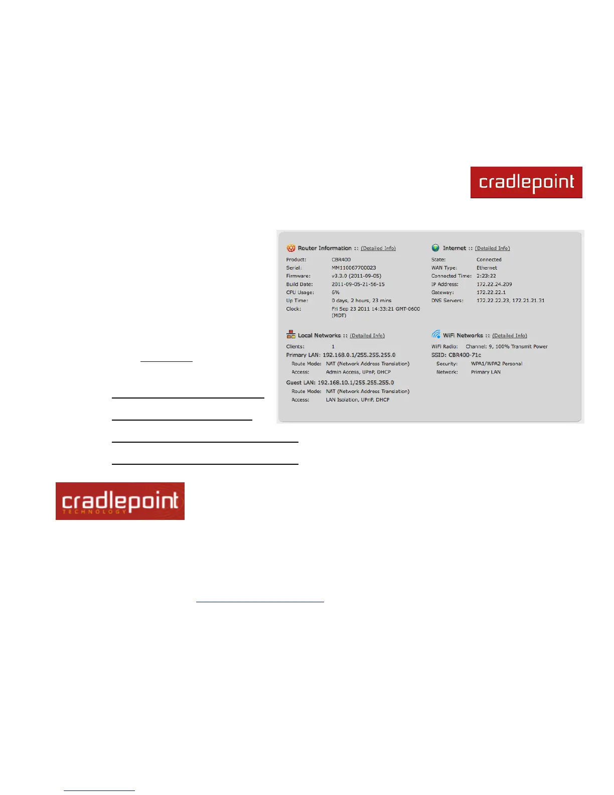 to this Dashboard. Also, you can click on the CradlePoint logo in the upper left-hand