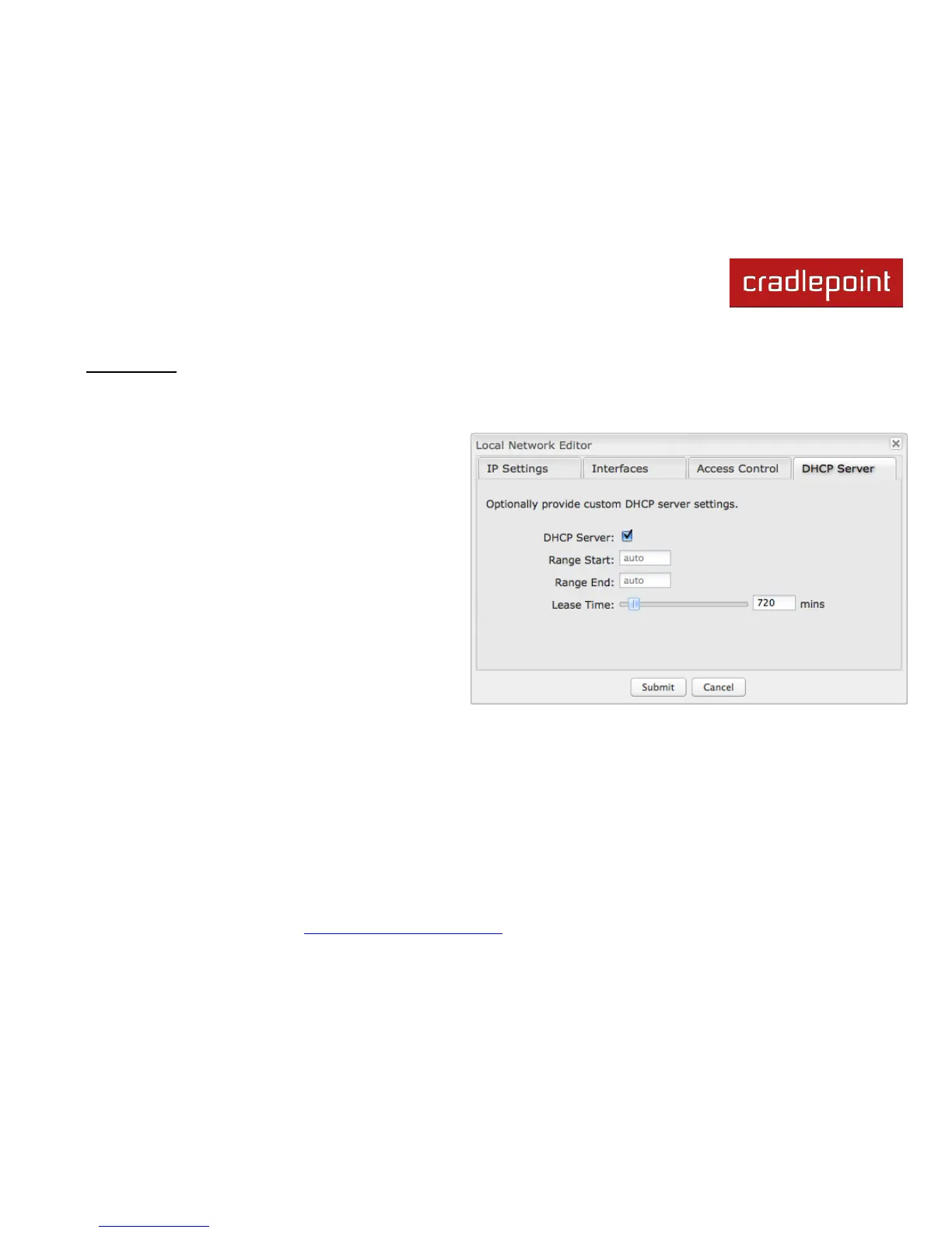 Lease Time: [Default: 720 minutes (12 hours)] The lease time specifies how long DHCP-enabled computers will wait