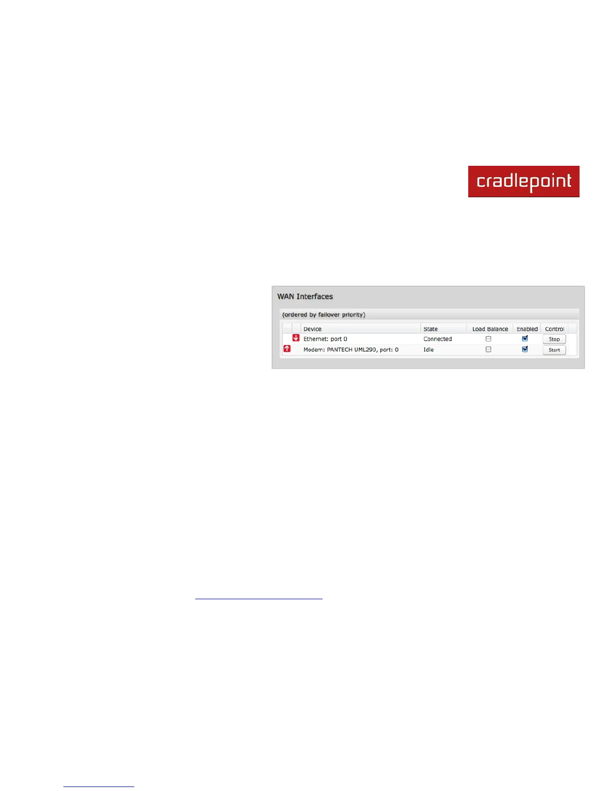 using any connected WAN interface consecutively. Selecting Load Balance will automatically start the WAN interface and