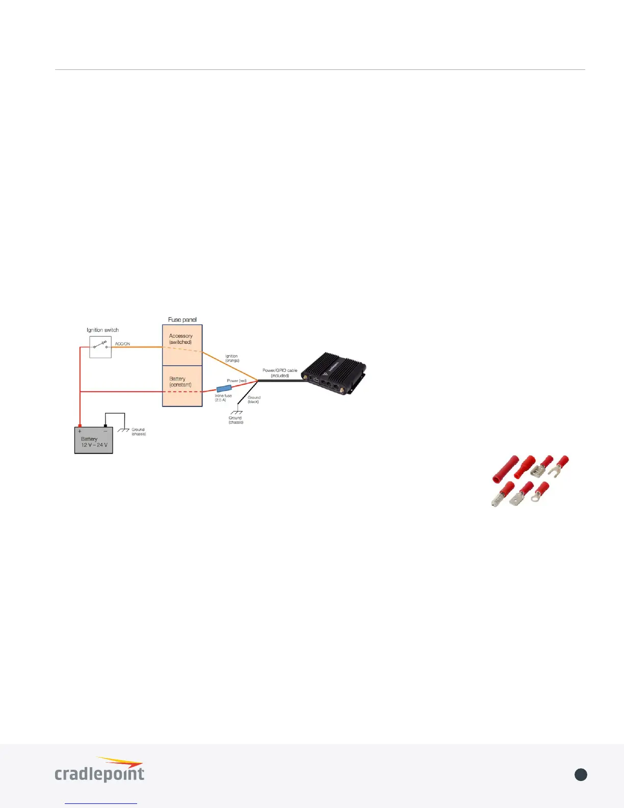 The wire colors shown are for the power/GPIO cable that is included with the COR Series mobile routers or available as