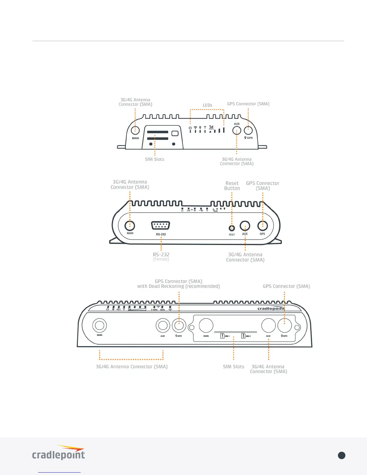 See the Cradlepoint antenna accessories page for recommended options for antennas. Also see the Antenna Ordering