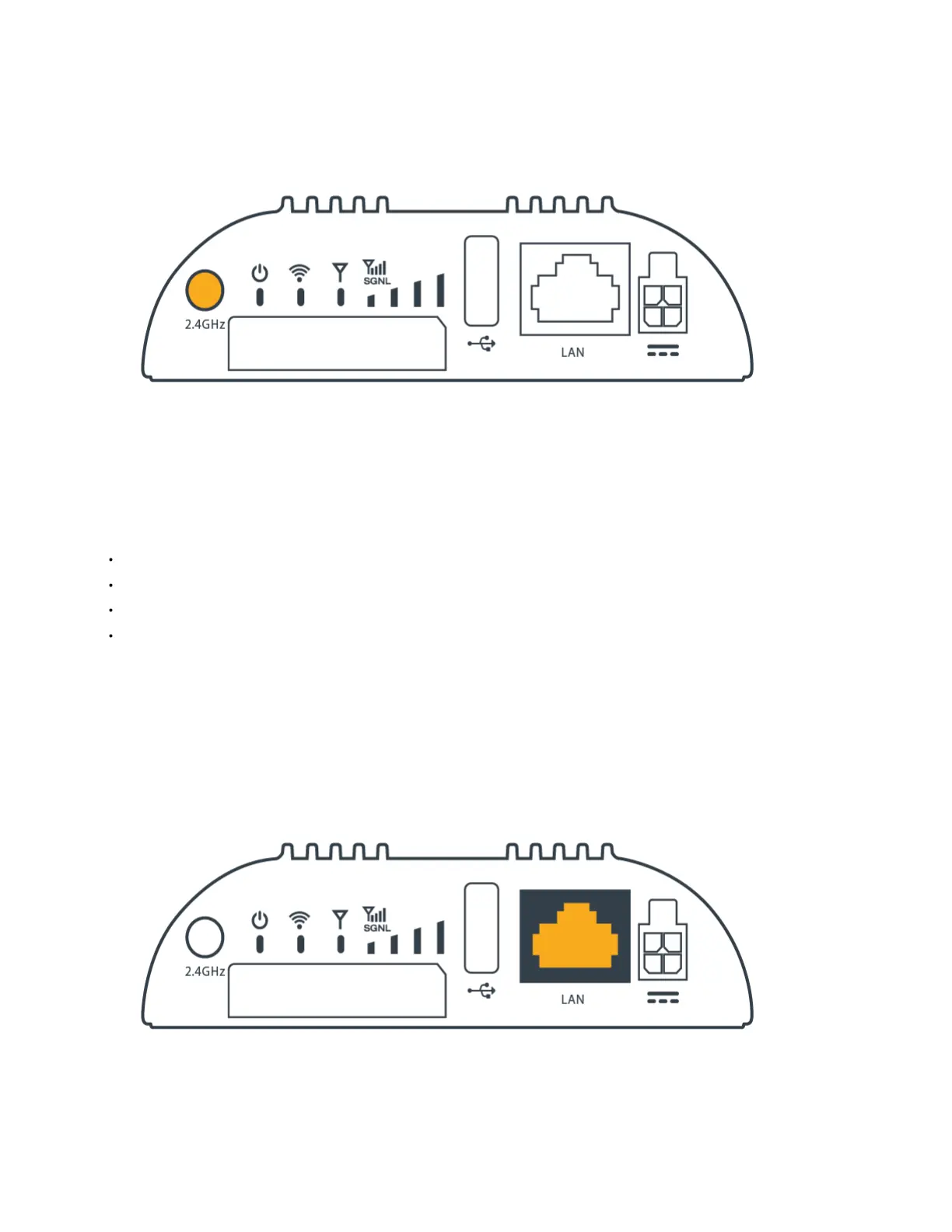 Connect the Ethernet cable to the port marked LAN on the back of the IBR200. Connect the other end to your cable modem.