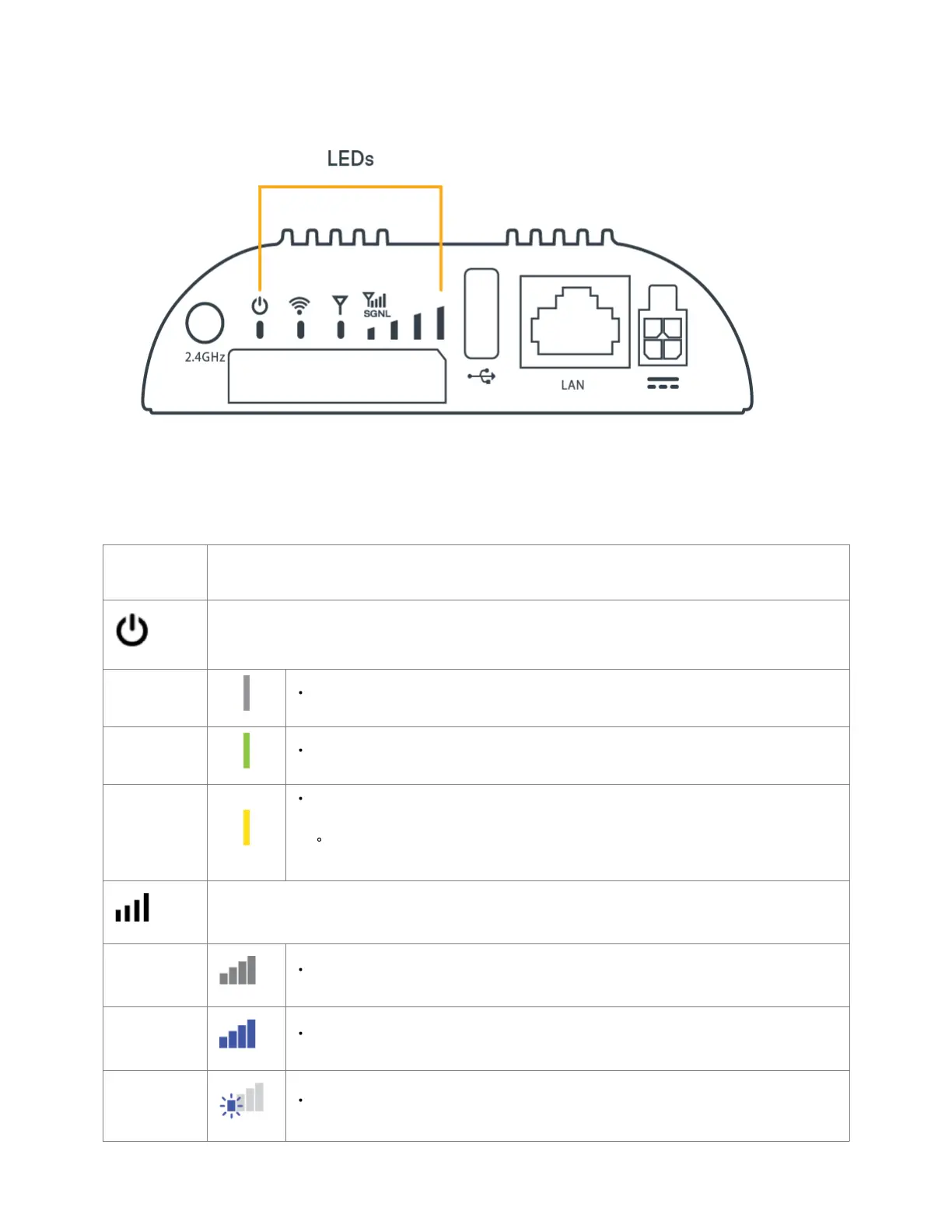 SIGNAL STRENGTH: LED bars indicate the active modem’s signal strength