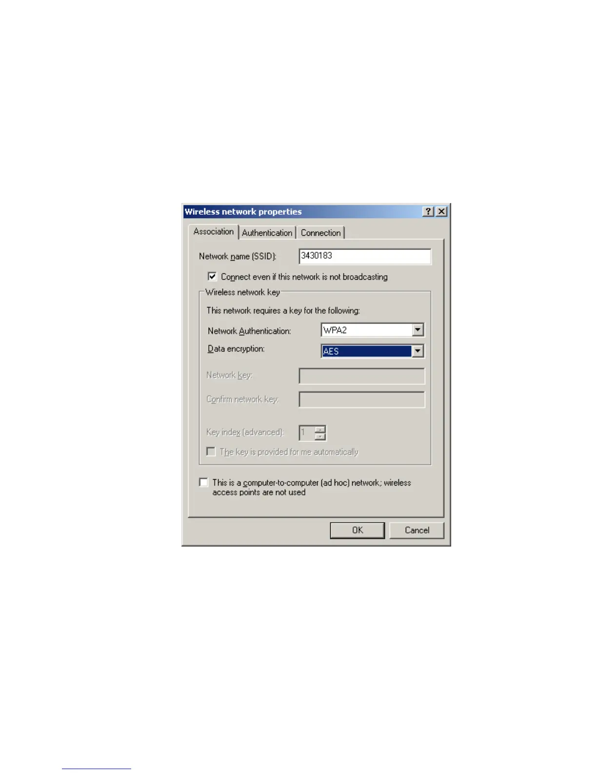 If the network key box is disabled, as shown in the above figure, another dialog box will appear