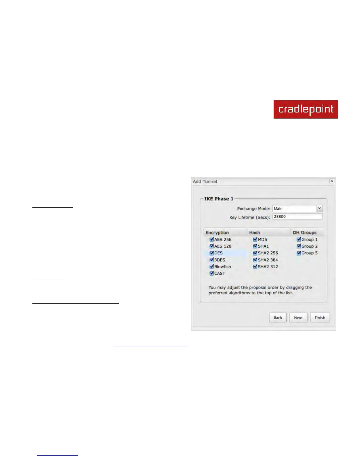 Encryption, Hash, and DH Groups: Each IKE exchange uses