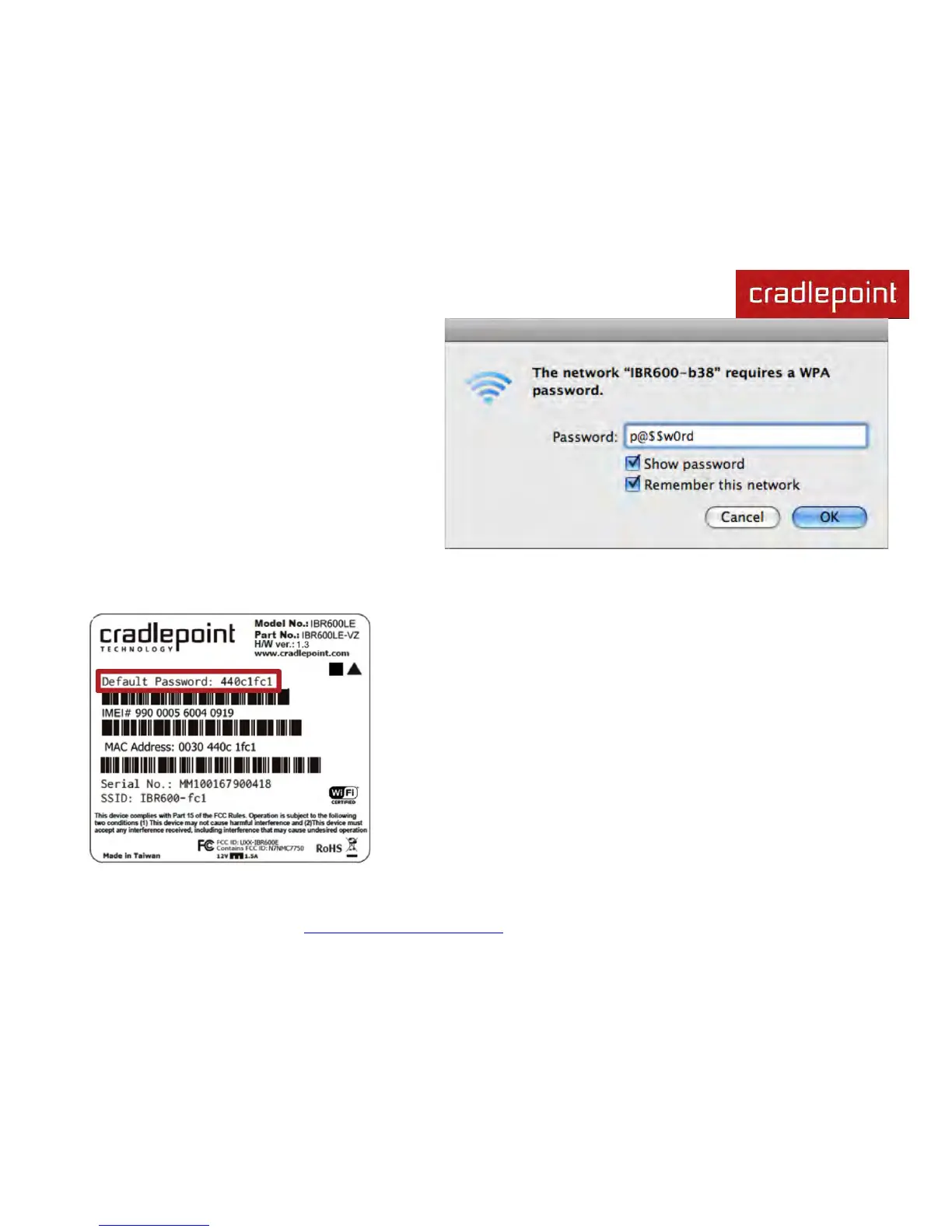 Password when prompted. The Default Password is provided on the product label found on the bottom of your router