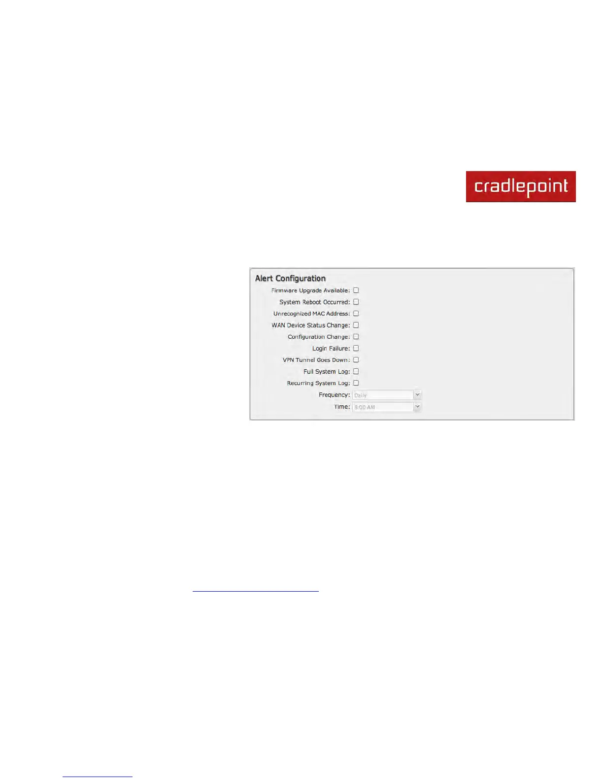 • Recurring System Log: The system log is sent periodically. This alert contains all of the system events since the