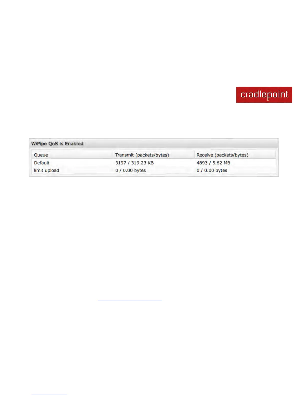 View the breakdown of packets and bytes sent and received associated with each WiPipe QoS rule.