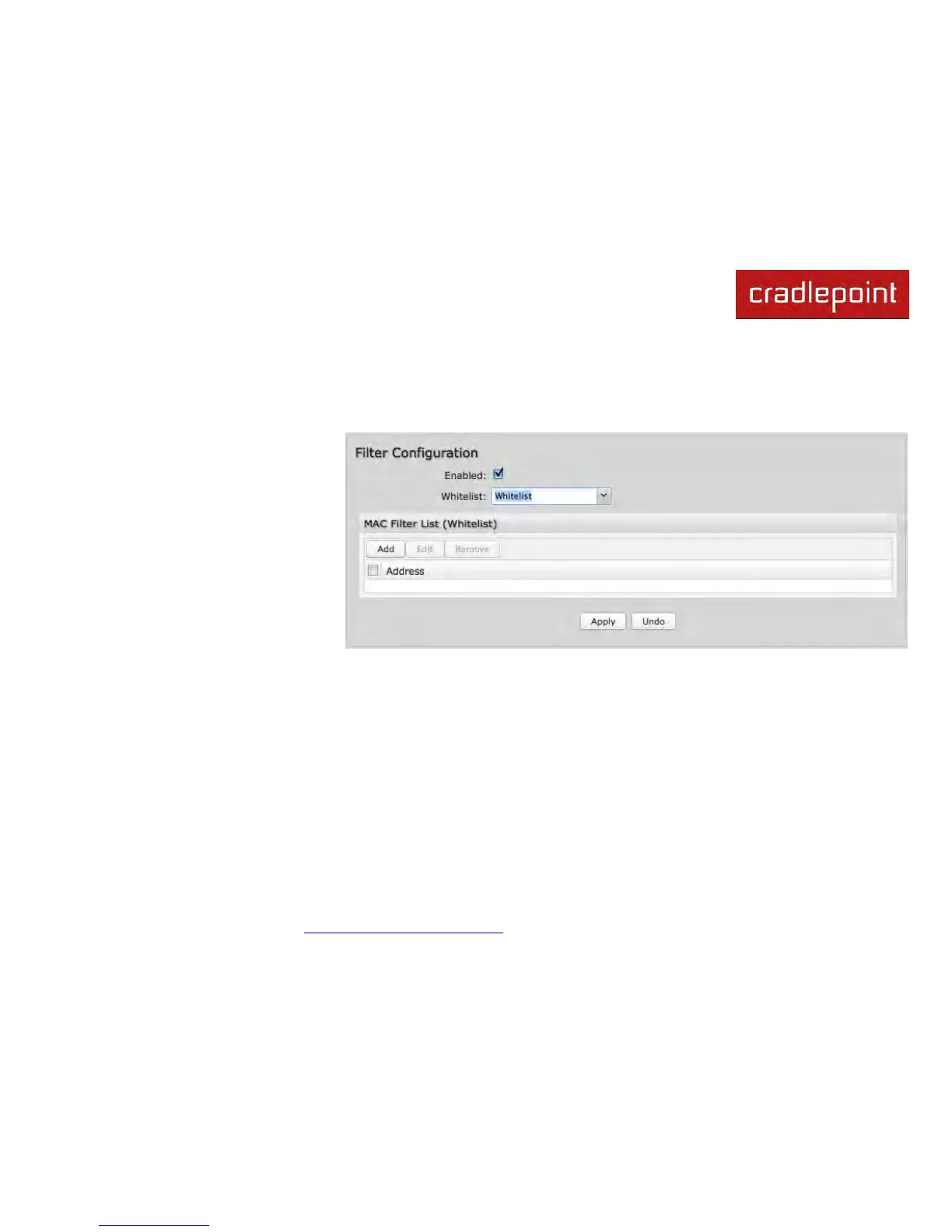 except those contained in the "MAC Filter List" panel. In “Blacklist” mode, listed devices are completely blocked from WiFi