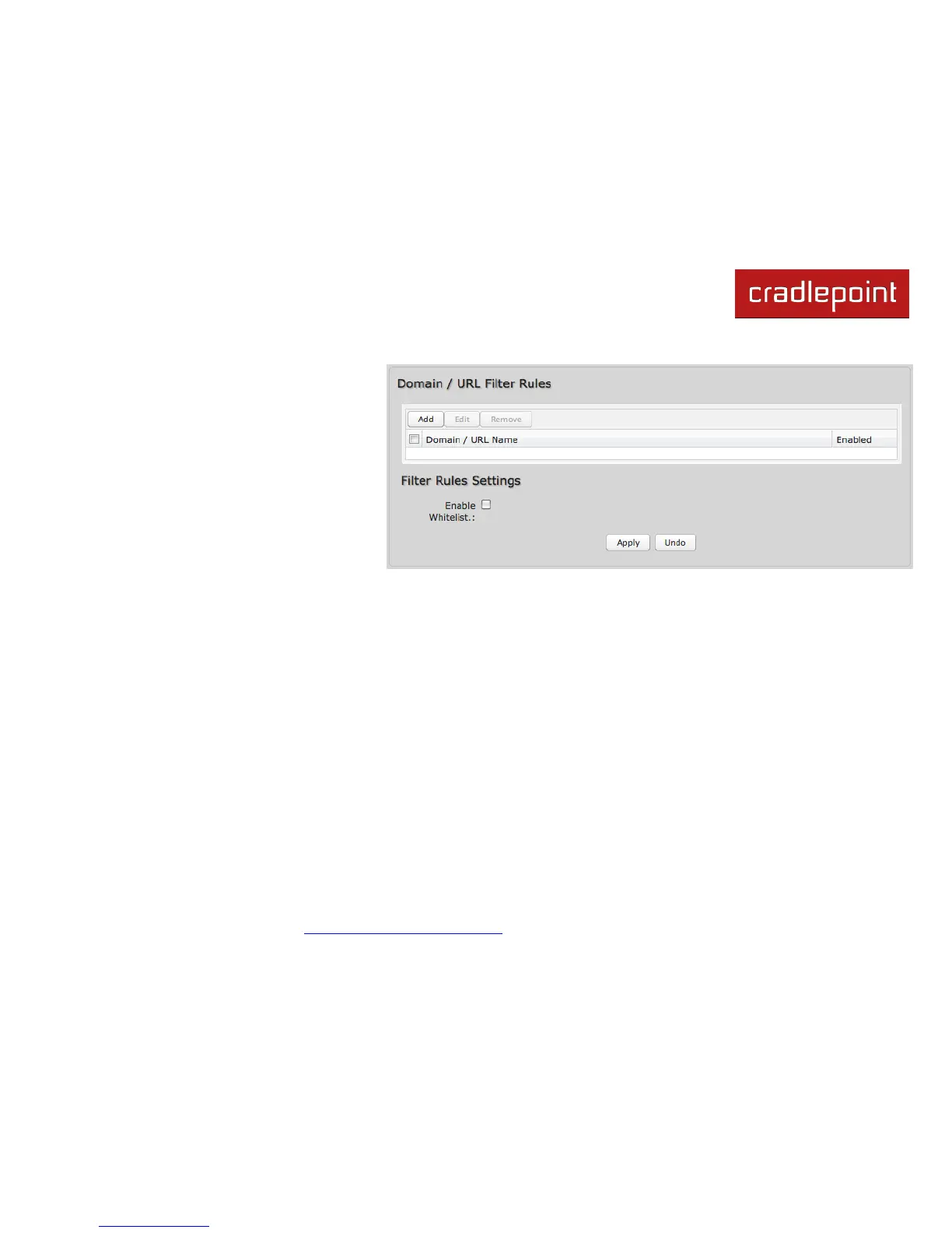 Enable Whitelist: Domain / URL filters allow you to block access from your network to any external domain or website.