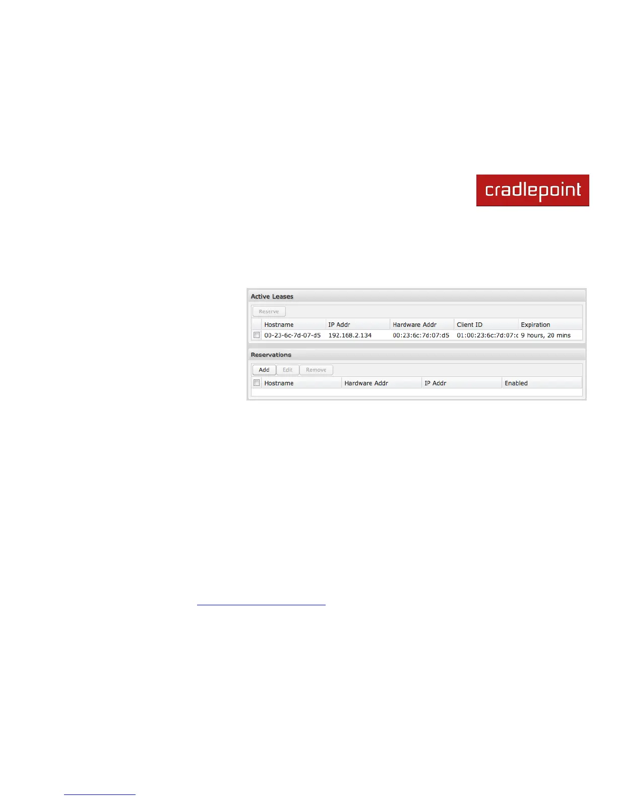 Addr), it is much simpler to select a device under the Active Leases section and click ―Reserve.‖ The selected device‘s