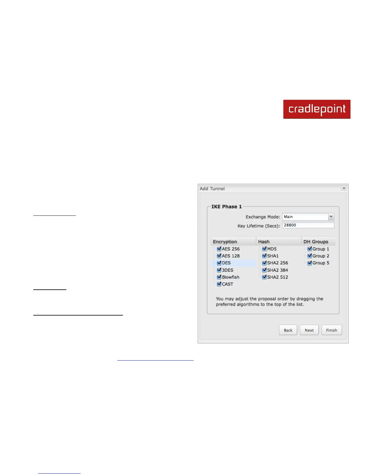 Encryption, Hash, and DH Groups: Each IKE exchange uses