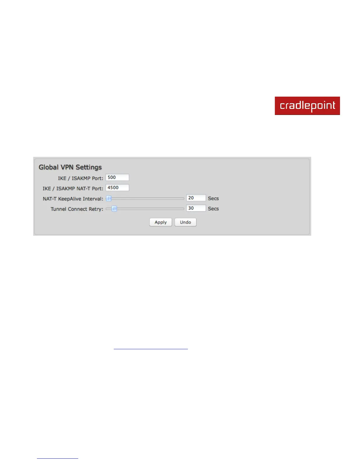 These settings apply to all configured VPN tunnels. Changing the Global VPN Settings is rarely necessary; the default