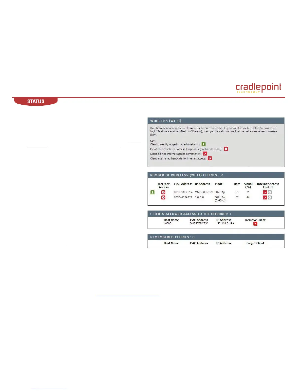 clients that are connected to the router, the MAC address of each