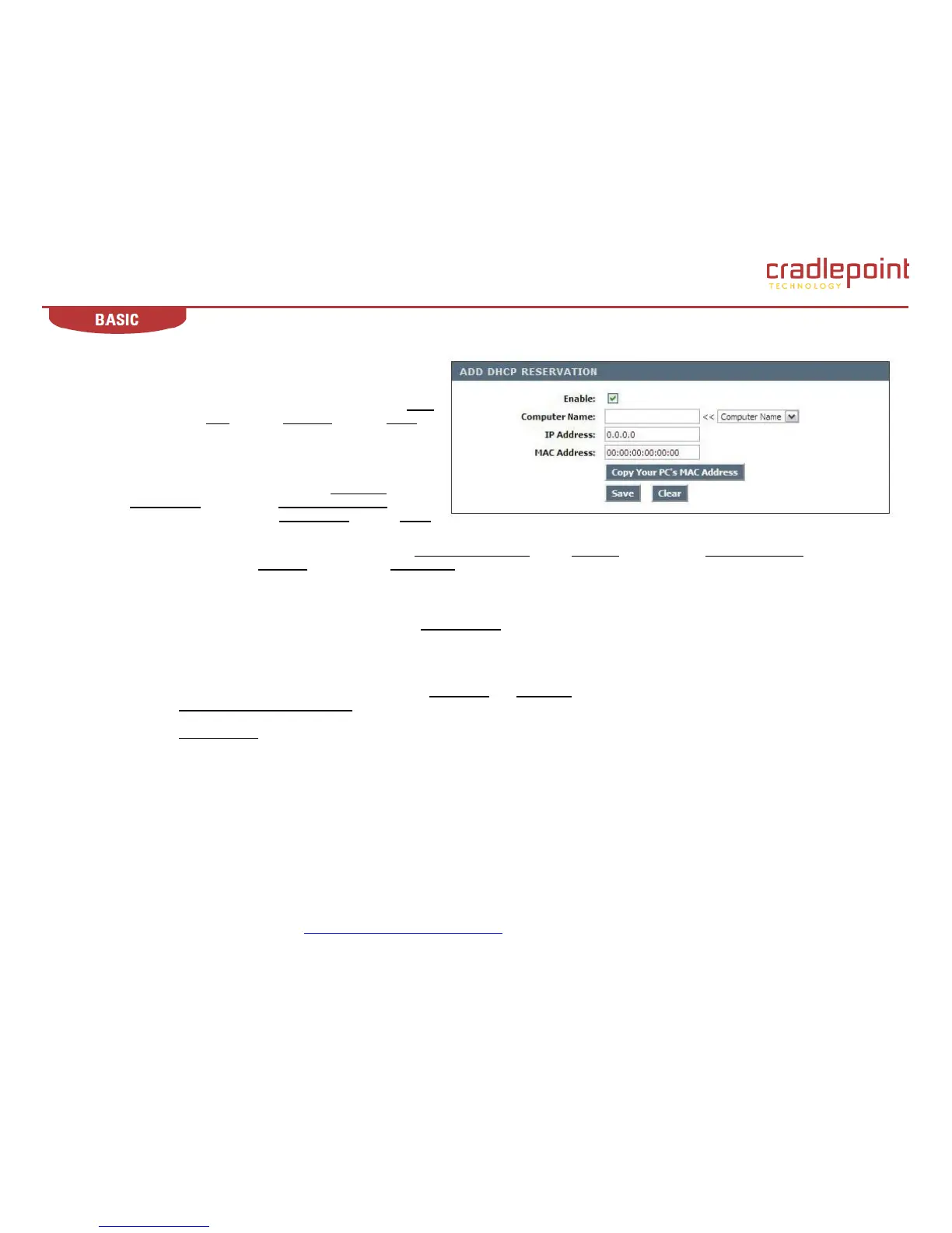 Example: A DHCP reservation is used for making sure the router always gives a computer or device the same IP address. Let‟s say you have a