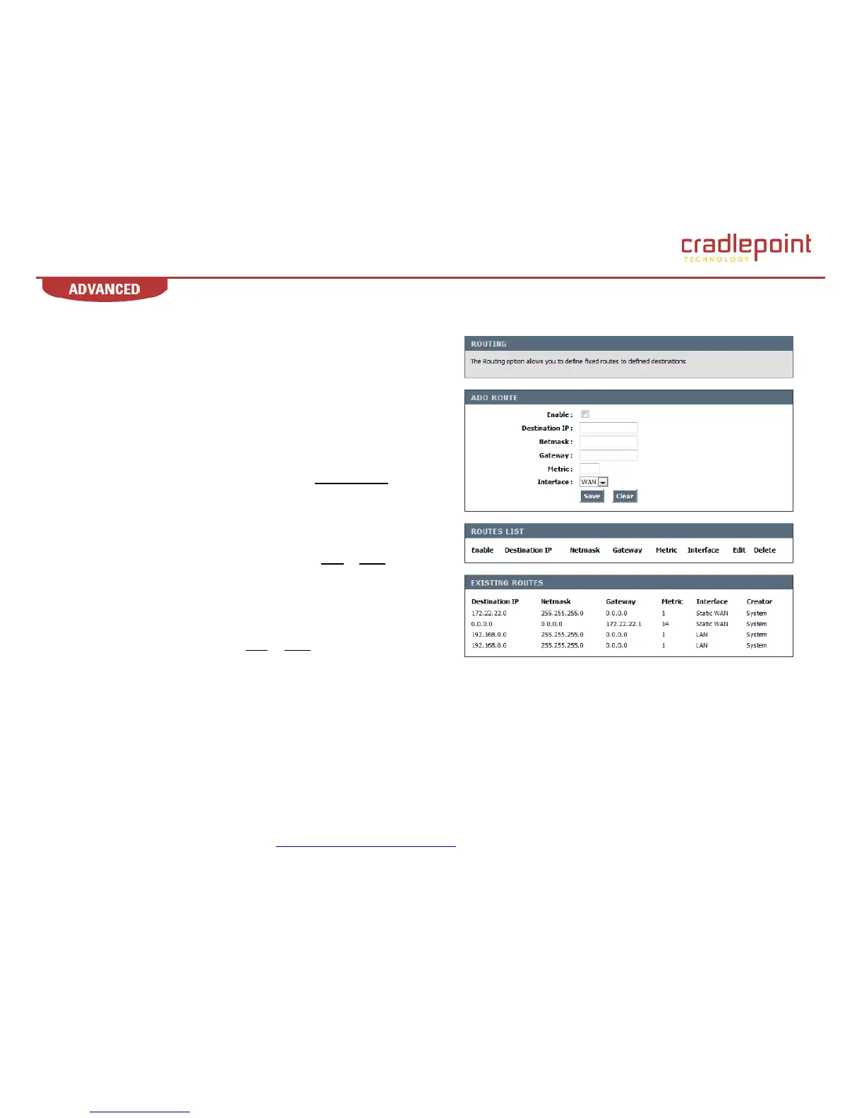 Use the Routing sub-menu to define fixed routes.