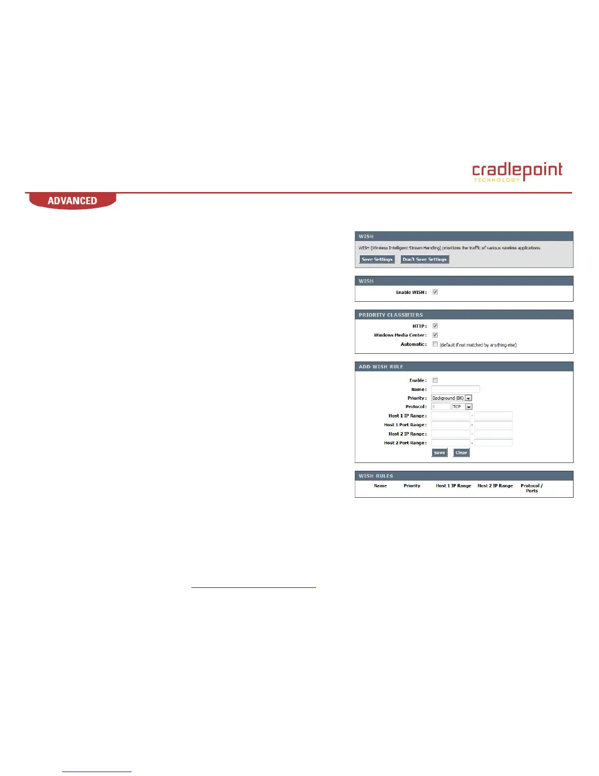 Use the WISH (Wireless Intelligent Stream Handling) sub-menu to prioritize traffic for