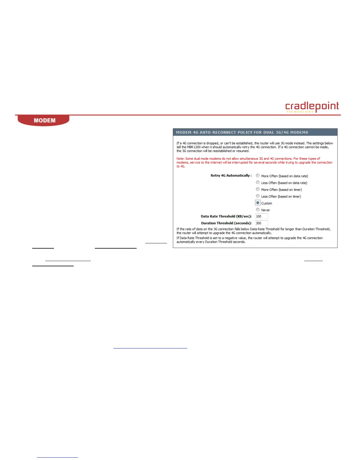 If the Data Rate Threshold is set to a negative value, the router will attempt to upgrade the 4G connection automatically every Duration