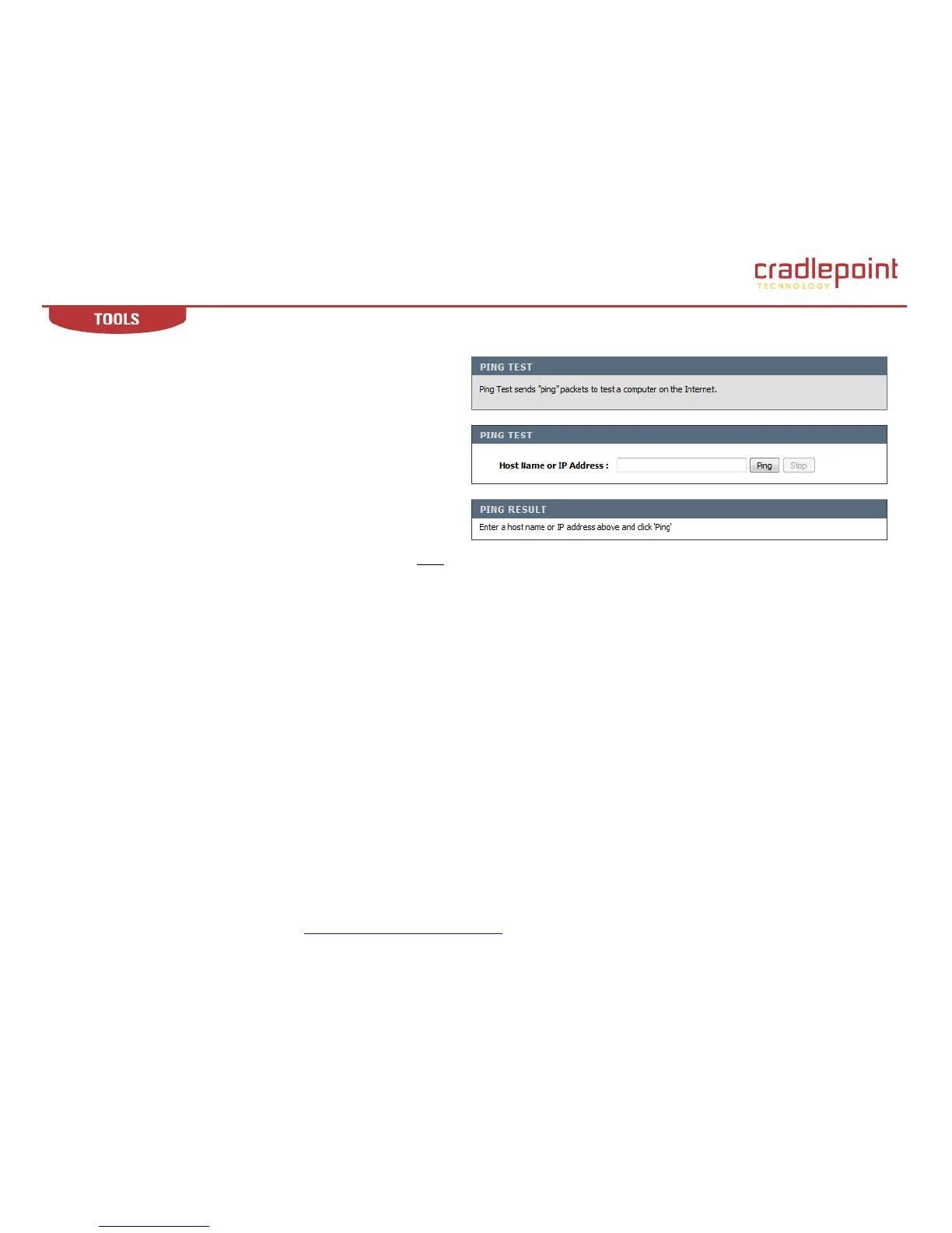 Stop. The host is pinged repeatedly until you click the Stop button.