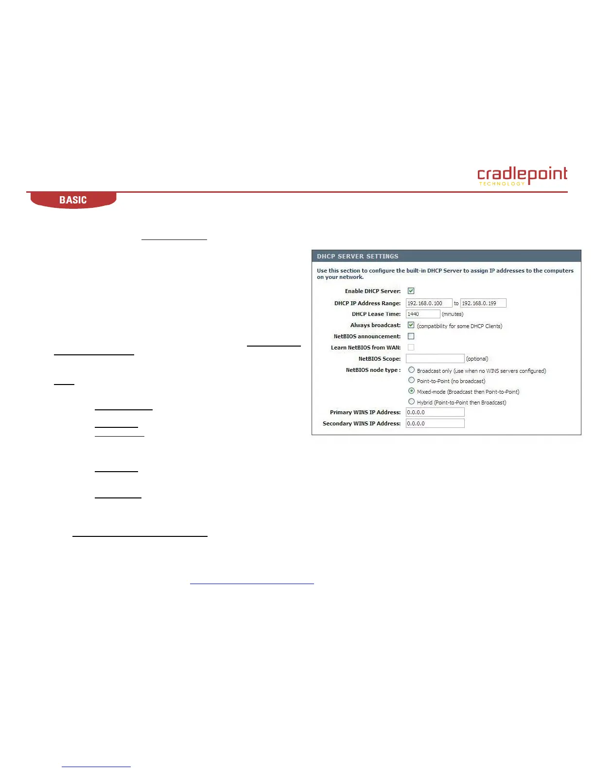 offer NetBIOS configuration settings to the LAN hosts. NetBIOS allows