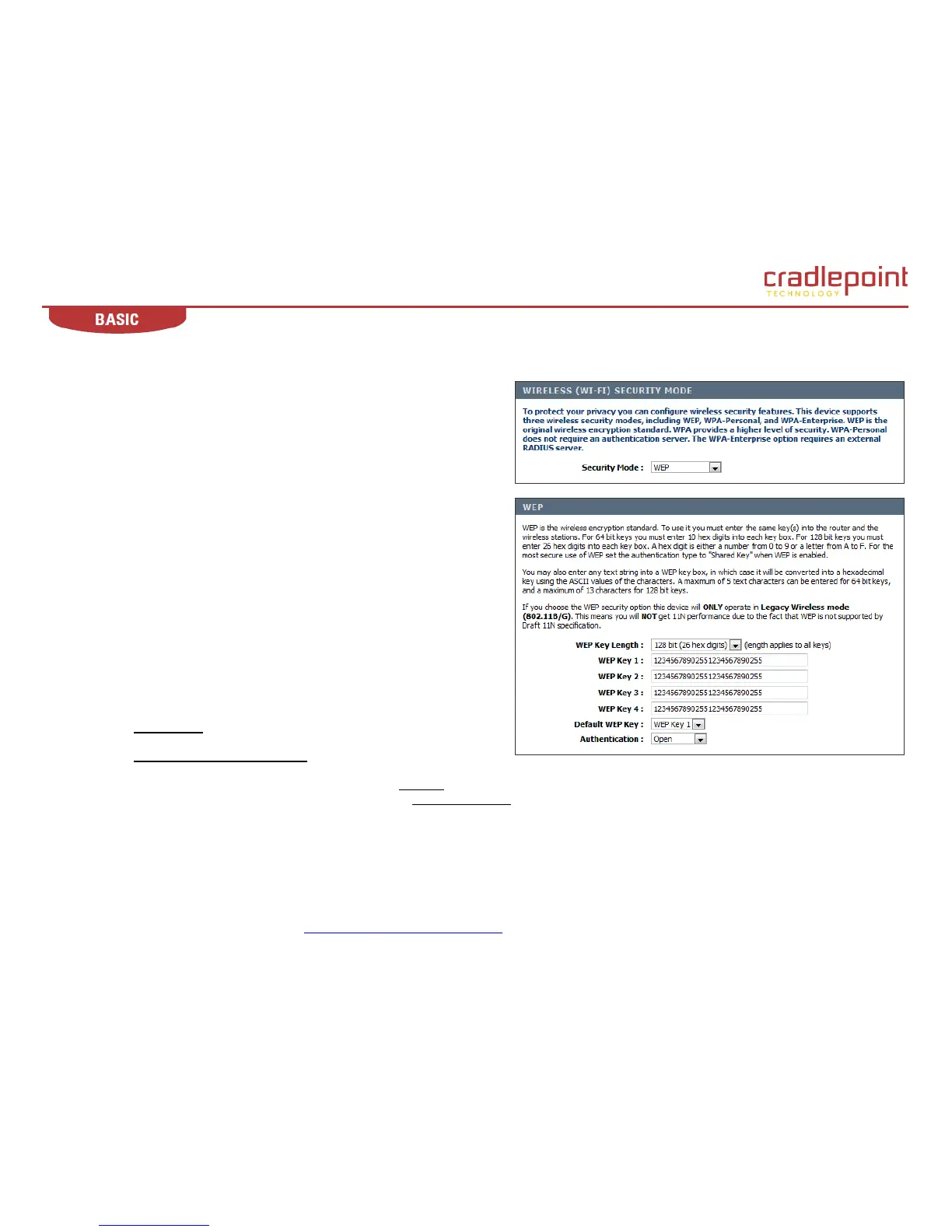 WEP Key Length. The key is a string of characters that you create. When