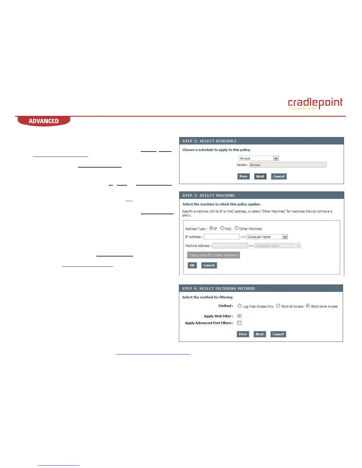 applies by clicking a radio button: IP, MAC or Other Machines.