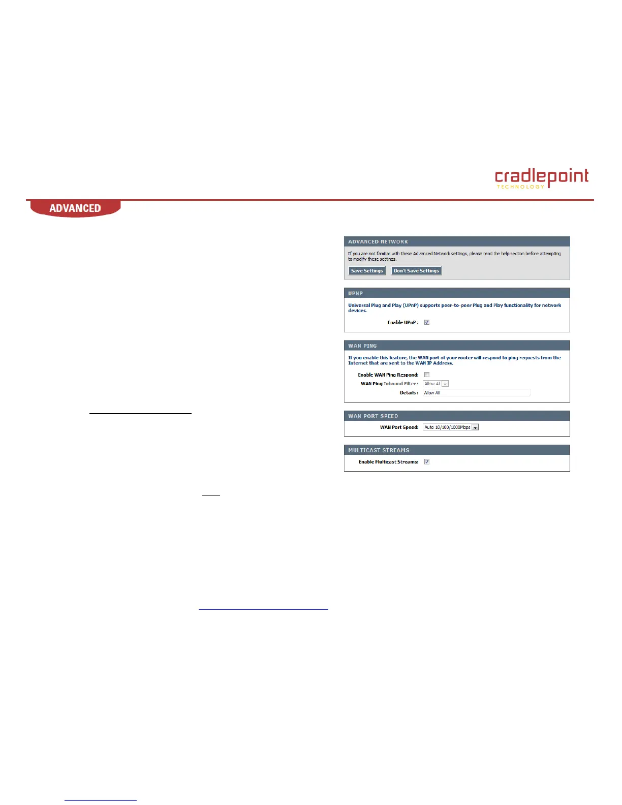 router. UPnP, WAN Ping response, WAN Port Speed, Multicast Streams, and