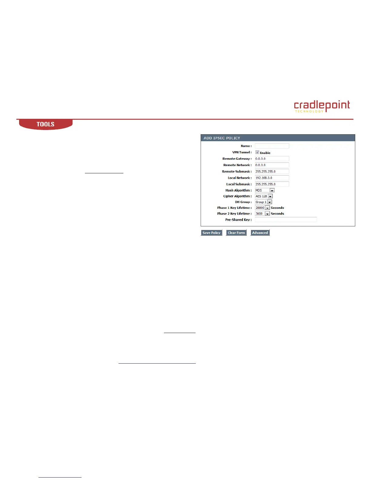 Save Policy. Adds a new policy to the IPSec Policy List. After adding the policy to the list you will need to save the settings at the top of this page