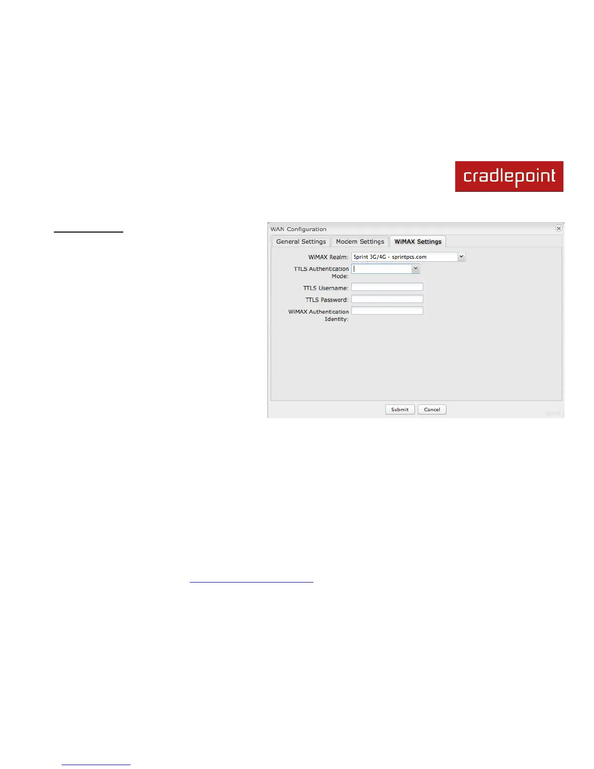 WiMAX Authentication Identity: User ID on the network. Leave this blank unless your provider tells you otherwise.