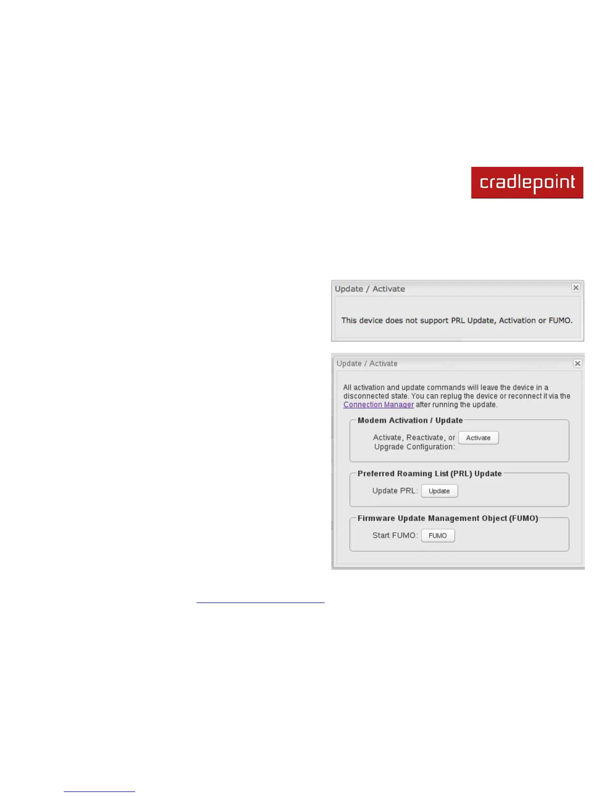 will be displayed when you select your modem and click ―Update/Activate‖. If no methods are displayed for your device