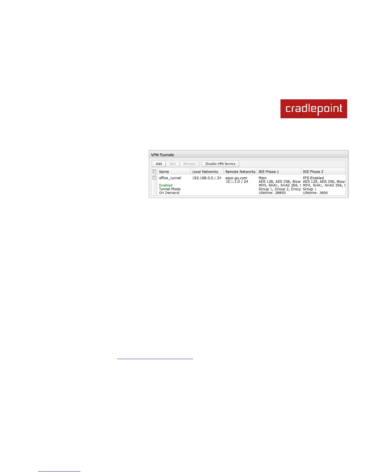 The MBR1200B uses IPsec (Internet Protocol security) to authenticate and encrypt packets exchanged across the tunnel.