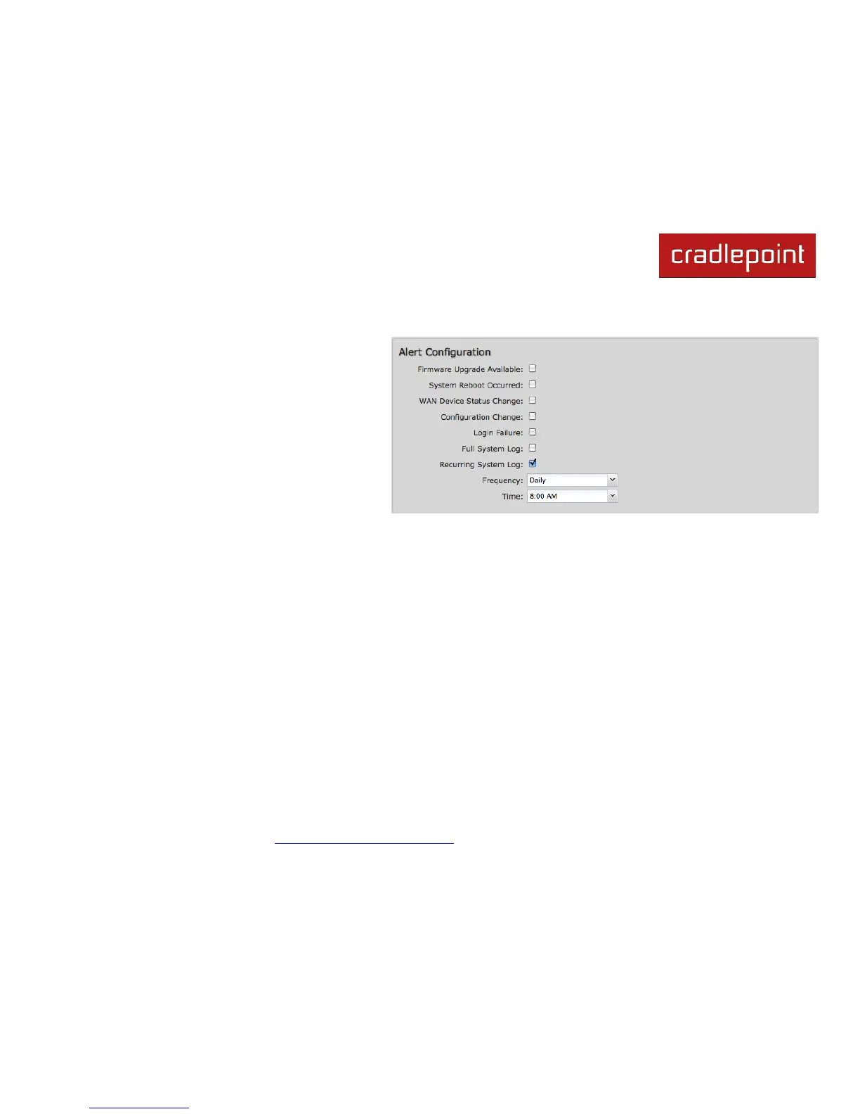 Recurring System Log: The system log is sent periodically. This alert contains all of the system events since the