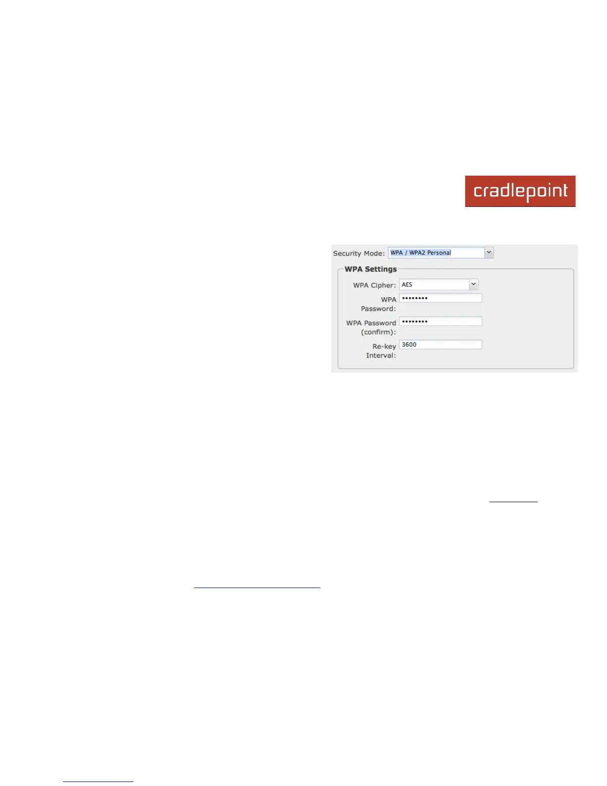 In order to protect your network from hackers and unauthorized users, Cradlepoint highly recommends WPA2/AES for