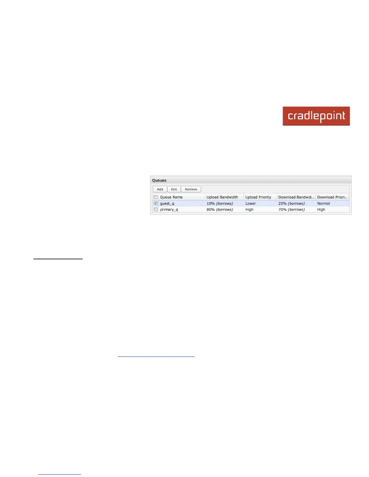 associated with one queue. Use rules to associate your more critical operations with queues that have higher bandwidth