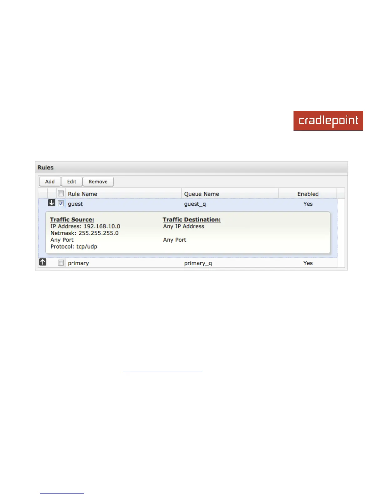 A traffic shaping rule identifies a specific message flow and assigns that flow to one of the queues created above.