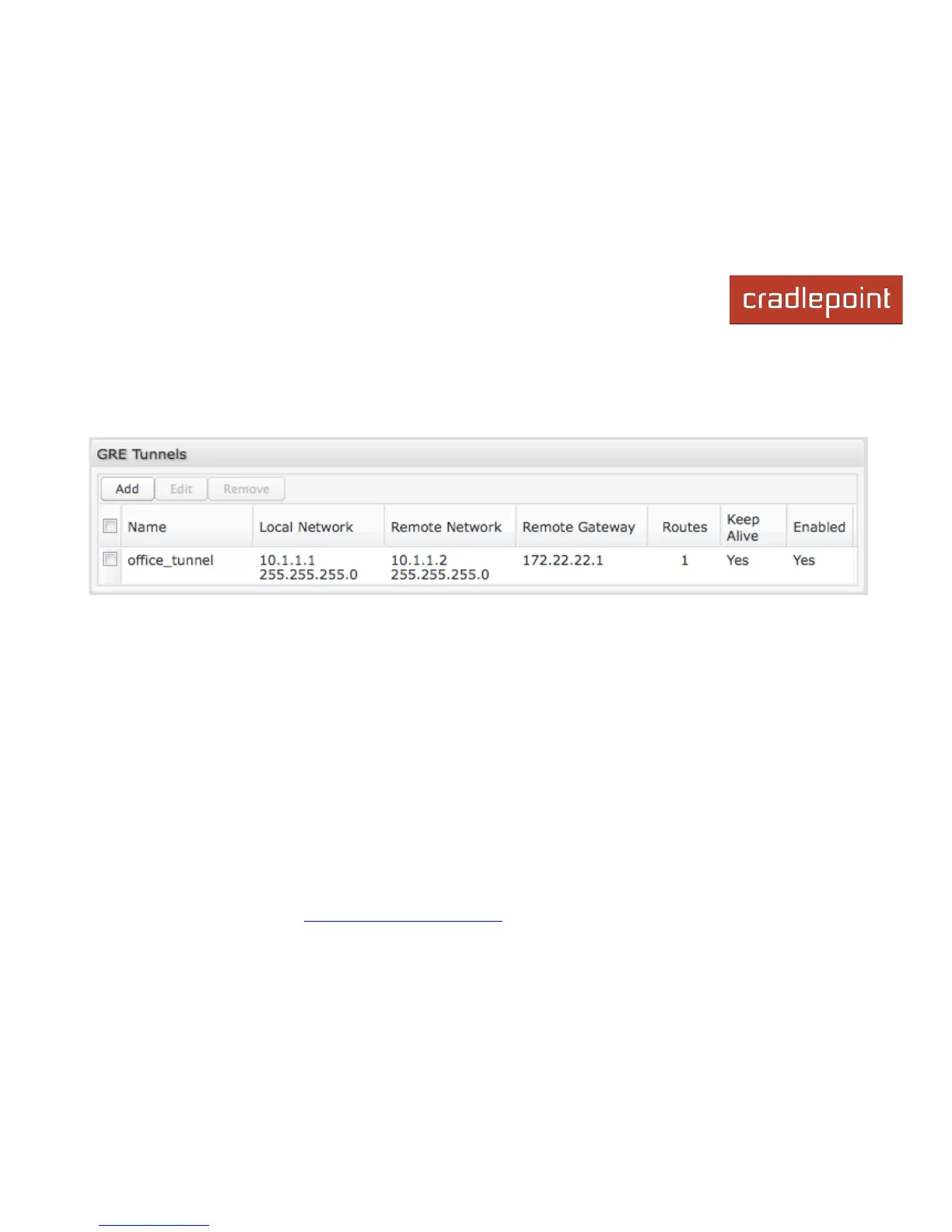 Click Add to configure a new GRE tunnel.