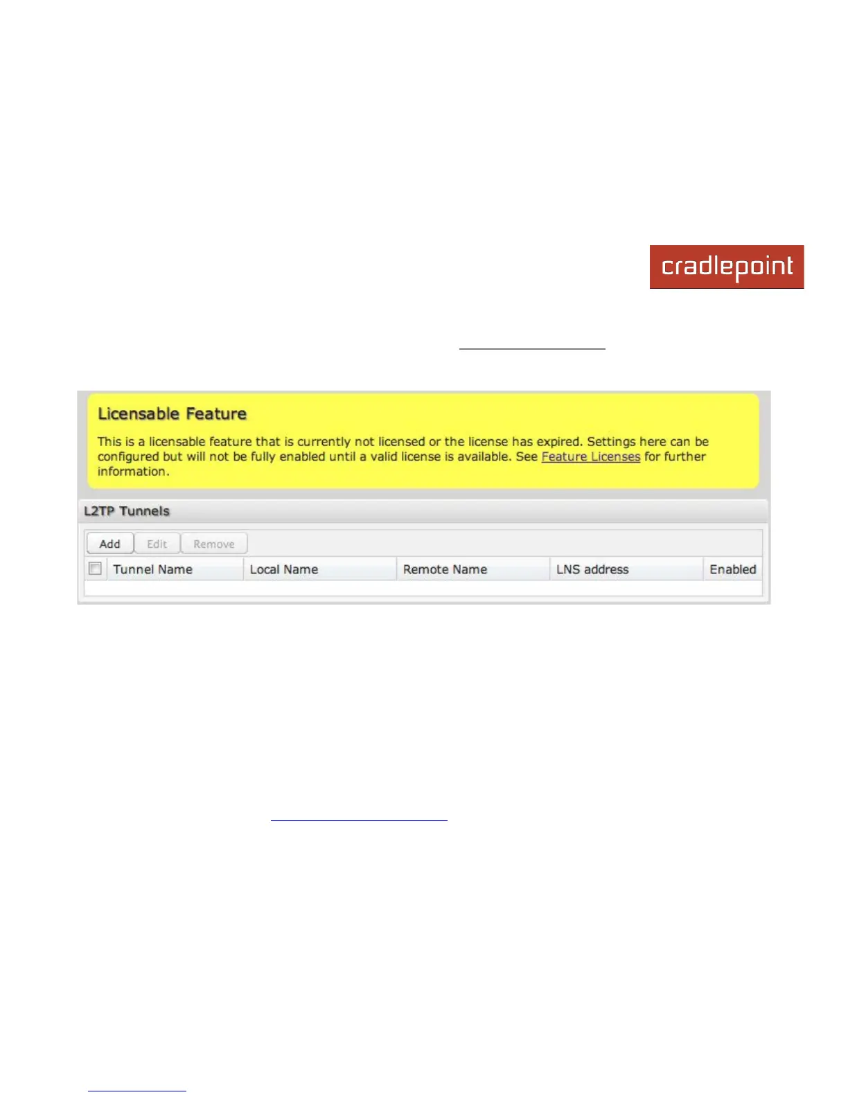 Once you have a valid feature license, click Add to create a new L2TP tunnel.