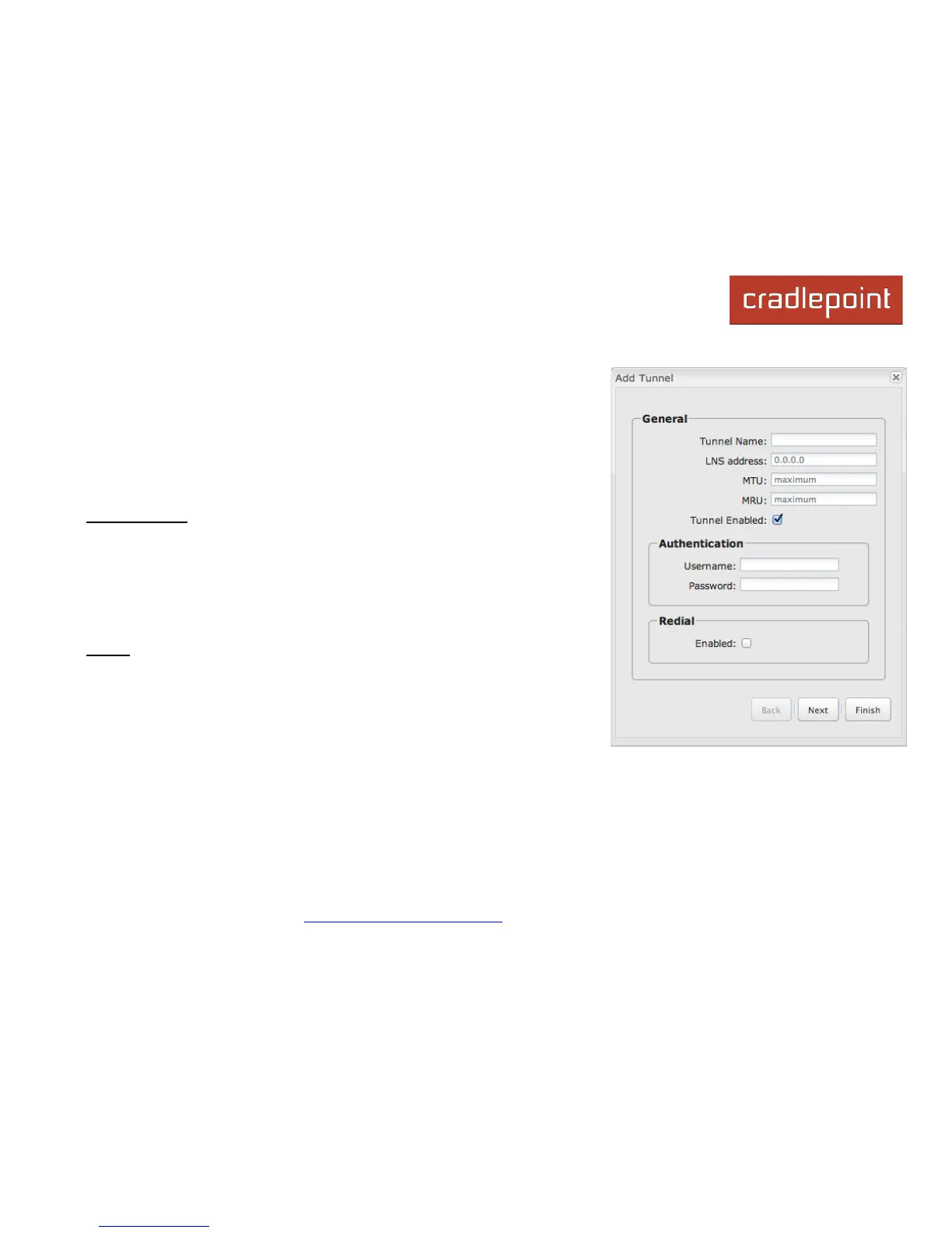 LNS address – Enter the IP Address of the LNS (tunnel server) peer.
