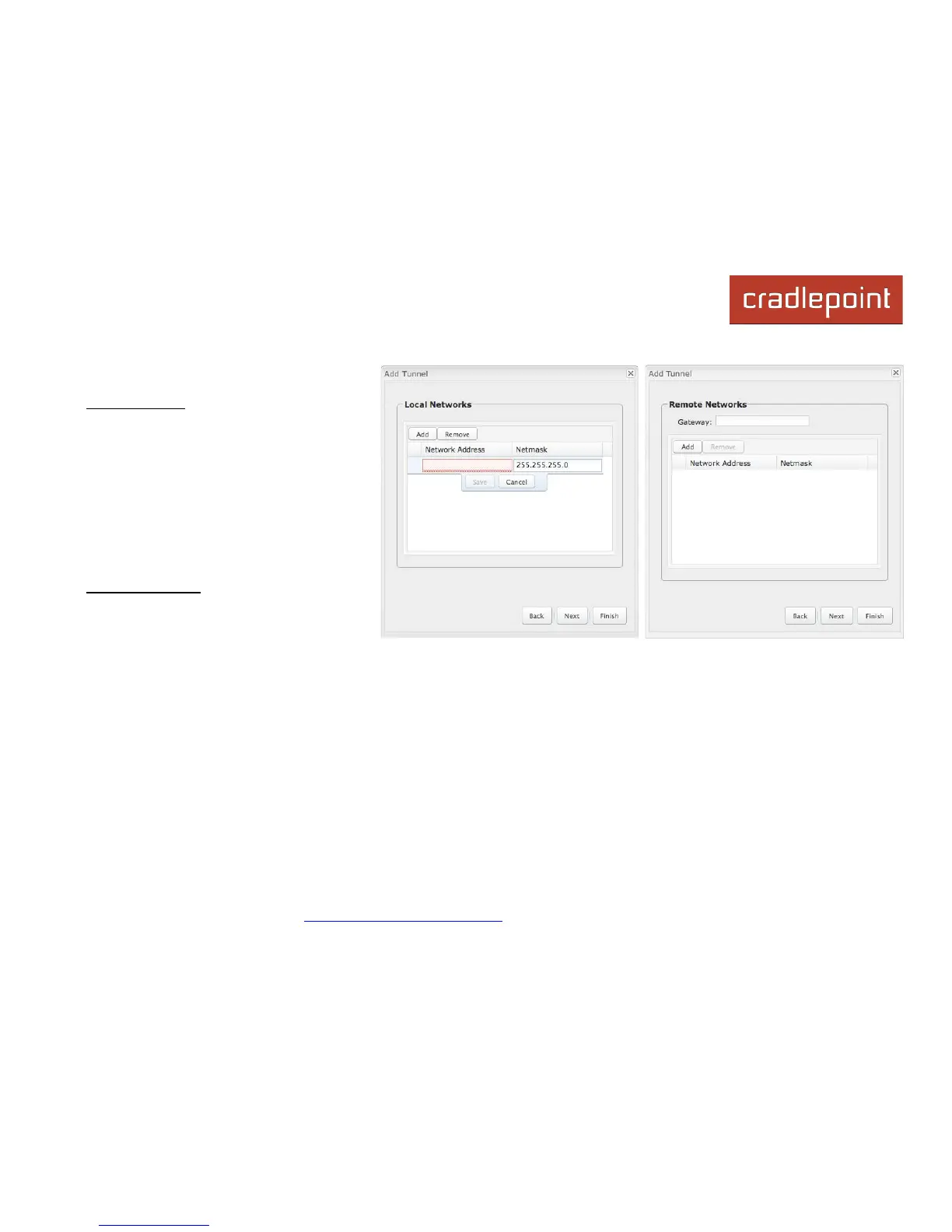 NOTE: The remote network IP address must be different from the local network IP address.